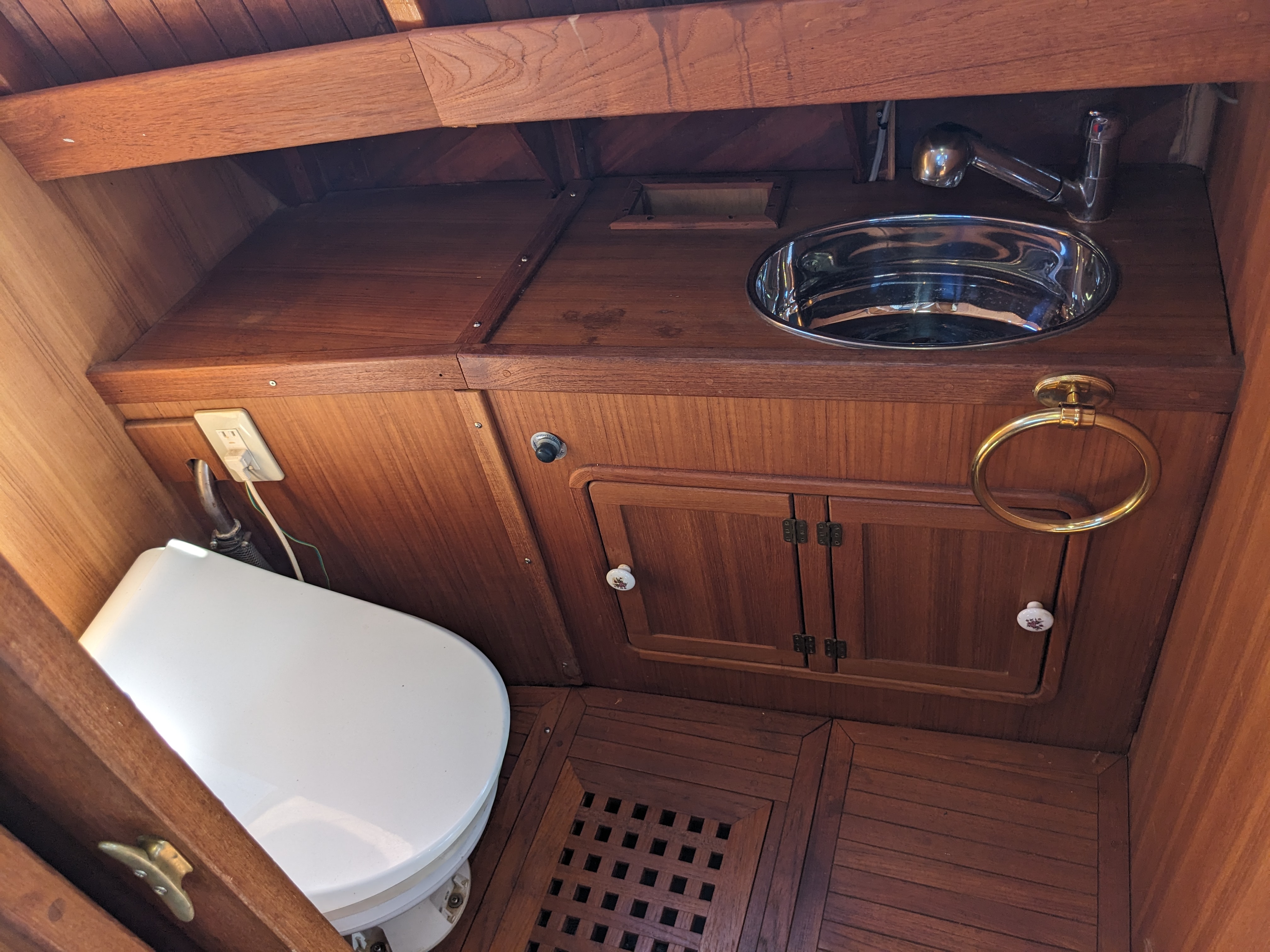 船内の広さはケッチタイプの為、マストステップが50cm前になるため、メインキャビンが広く取れ、32fクラスの広さがあります。